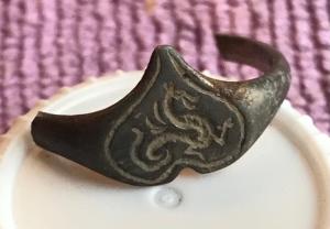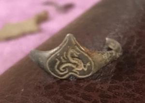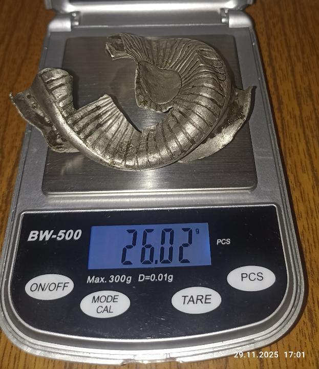 Вчера заглянул в банку, где с лета вымачивал шмурдяк разный... Привлекла внимание в черно-зеленой патине мятая и треснутая крышка, взял и почистил ее в лимонке... Думал, поначалу, что это бронза-латунь, но оказалось - серебро! Так и не нашел фото, где и когда ее поднял, видимо, не сфоткал ее с находками, подумал, что шмурдяк🙁 -