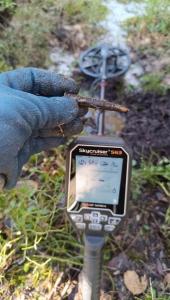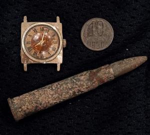 Всем добра. Принимайте в компанию) С приборным поиском слегка знаком – лет 15 назад походил с Аськой друга в компании по нашим северным просторам, понравилось, но… Сейчас решил воплотить давнюю мечту в жизнь. Долго определялся с Прибором и остановил свой выбор на Skycruiser S63. Вчера был первый выход. 1-я локация: заброшенная лесная дорога между деревнями с остатком поста контроля/патруля и блиндажа времён интервенции по периметру вокруг блиндажа встречаются остатки колючей проволоки, сейчас она на высоте около 2 метров, а была с человеческий рост. У нас в лесу снега ещё полно, но находка порадовала: винтовочный патрон времён 1918-1919 гг. (у нас с августа 1918 по сентября 1919 года была интервенция). 2-я локация: маленький не обустроенный городской пляжик на берегу Северной Двины. Тестировал новинку с товарищем, (у него 13 летний опыт приборного поиска). Результат: монета СССР 10 коп. 1990 г. и женские позолоченные часики Слава. Первый коп - удался) PS патрон привёл в узаконенное состояние -