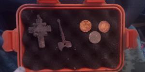 Доброго здравия Вам дорогие ФорумчанЕ ✌️ Вчера ,продолжительное время определялся в какую сторону мне задвигаться, чтобы была возможность и по лесу походить и в случае чего и пошурфить! Остановил свой выбор на хуторе Екатерининских времён ,в 110 км. от города. Воскресный день обещал быть во всех отношениях благоприятным! (по погоде,переменная облачность без дождя 😢опять кто то ошибся). В 5 30 я уже во всю собирался и запихивал в рюкзак только что созданные мной творения бутербродной продукции и термос с ароматным травяным чаем. В 8 30 я был уже на месте! Замечательное,тихое место! Хутор находящийся в овраге, (в этом и была загвоздка😐 после начала дождя!) до ближайшей жилой деревни 15 км. по грунтовой дороге. Зарядившись несколькими глотками ароматного чая и определившись с началом маршрута своих петляний😅 Я пустился в свои скитания по хутору ,в котором когда то давно кипела жизнь! Выхаживал битые фунды и вокруг них, примечал не тронутые,ходил по старой дороге и гулял по лесу! Не заметил как пролетело три часа! В хабарнице кот наплакал: три ранних совета и две конинки. Решил перейти от скитаний к шурфу найденного ,нетронутого фундамента. Спустя минут 40 начал сильно беспокоиться ( керамика, стекло,кирпич лезет не дуром) отсутствием достойных сигналов! За почти час ,две лысых пуговицы и не понятная накладка! Спустя ещё минут 10 всё таки словил сильнейший, чистейший сигнал 😁 подумал ,что крупная империя,но это даже лучше! Нательная иконка друзья! А тем временем на меня надвигались тучи😢 обещали же ,что не будет дождя! Через 20 минут заморосил дождь и временами пока я ещё 20 минут шурфил(безрезультатно) менял несколько раз свою интенсивность! Вот на этом моменте я уже серьёзно забеспокоился, моё сердце от волнения ударилось о рёбра,а разум подсказывал,что пора сваливать пока не поздно!😂 Всё таки верное решение было принято! В гору моя пузотёрка уже поднималась с небольшим трудом, (задницу таскало из стороны в сторону) ещё бы минут 30 промедления и остался бы я там до тех пор пока не просохло! Жаль конечно,что так мало времени получилось покопать,но тем не менее не без находок! Пока я добирался до дома, мой друг и по совместительству наш с вами модератор @Arvest определил нательную иконку29 баллов