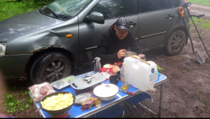 - концерт окончен. Отгремели последние фейерверки и всё стихло. Фест завершился не успев начаться 😔 с уездом организаторов,уехала и большая часть участников. Оставалось не больше десятка машин, владельцы которых видимо, истребили ещё не все свои запасы огненной воды и им хотелось продолжения банкета,либо так же как и мы не хотели верить,что фест завершён,сворачивайте флаги! Оставшиеся собрались у костра и пели песни под гитару,доедали остатки своих провиантов,слышался звон стаканов и отборная русская матершина 😁 Не стали мы с Арвестом составлять им компанию,а решили пока у нас есть такая возможность,покопать Московскую землю. Открыв "это место" я нашёл не так далеко от нас деревушку со старой дорогой через лес,на этом и порешили! Сборы заняли около часа и попрощавшись с этим прекрасным местом и камрадами ,мы отправились дальше,колесить по Московским дорогам.... - в плену на ровном месте .... добравшись до места назначения,мы решили поближе подъехать к лесу,чтобы припарковать машину поближе к дороге,но не тут то было! Сухая было дорога по которой мы удачно спускались к лесу,неожиданно сменилась скользкой, глинястой квашнёй. Поздно я ударил по тормозам,заподозрив не ладное! Московская земля уже взяла нас в плен! Поражало во всей этой ситуации лиш одно: то что машина ,стоявшая, абсолютно на ровном месте 😂 буксовала и не могла с него сдвинуться! Почти полтора часа,мы с Арвестом,своими силами пытались вызволить нашу пузотёрку из грязевой глины,но попытки наши были тщетны. Решив не тратить понапрасну своих сил ,да и к тому же заметили мы не так далеко от нас маячивший из стороны в сторону синий трактор 😅 -Пошли , говорю я Володе трактористу в ноги кланяться. Погода ещё портиться,тучи страшные ходют,не дай боже дождь пойдёт, всё тогда кранты совсем будет. Катается вроде не далеко от нас,надо поспешить, а то глядишь свалит куда нить и придётся что то другое придумывать,а так хоть шанс есть,глядишь поможет незадачливым копарям. Бутылка горячительного,если чё есть😁русская валюта,так сказать! -Была не была! Согласился со мной Арвест ! и затрусили мы через поле напрямик. Тракторист по итогу добряком оказался, настоящий русский мужик 💪кремень! Отпросился у мастера и примчался к нам на помощь и выручил и русскую валюту взял! После нашего удачного спасения, не совсем ещё потерявшие энтузиазма два камрада ,таки решили всё таки отправиться по старой дороге в лес. Часа 3 а может и все 4 бродили мы по топям и тому ,что осталось от старой дороги. По возвращении к машине, настроение наше, скажем было мягко говоря немного подпорчено. Пустые хабарницы (не считая найденной Арвестом конины и немного металла в рюкзаке),грязные,уставшие,да ещё и без запасного плана в голове! Дааааа ....уж Без проводника здесь,в таком большом городе,будет очень сложно найти место для копа! Непонятно каким чудом увидевшие нас камрадики,которые тоже были на фестивале, подсказали локацию,но и там настроение наше не улучшилось,так как с хорошими сигналами была полная беда,а вот с пробками всё нормально👍в избытке! Руки потихоньку начали опускаться, настроение спряталось под автомобильный коврик и категорически не хотело от туда вылезать😔 И сразу вспоминается мне цитата из фильма "жених из Майами" Где цыганка говорит ему: что мол, найдёшь ты жену,когда совсем надежду потеряешь!!! При