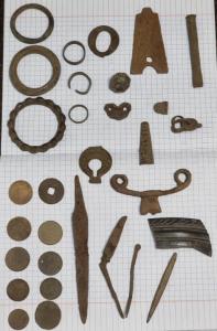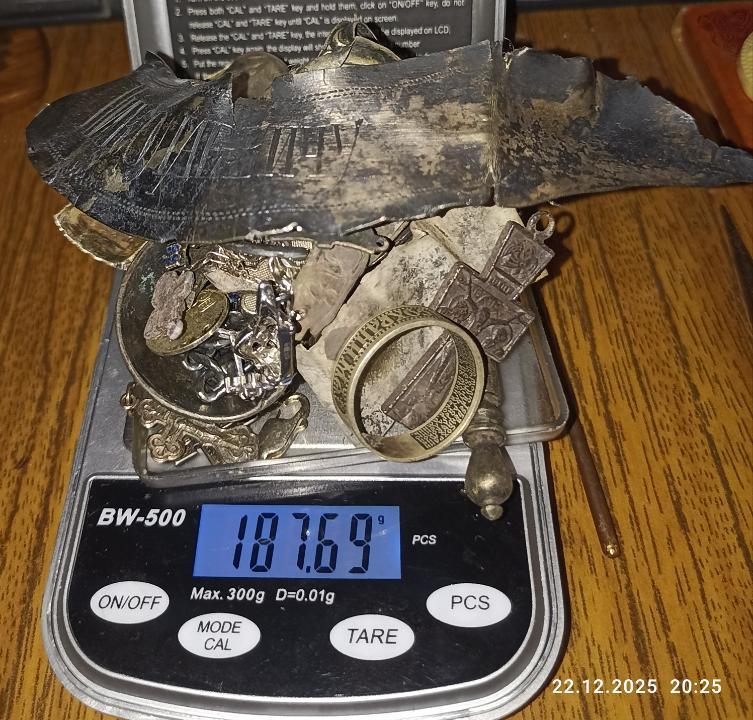 Доброго всем! Возможно, вчера мы закрыли сезон. Поймали погожий денек и в надежде, что снега мало и земля еще недостаточно промерзла поехали с лесным сторожем, царем и его другом в наш волшебный лес. Не доходя до базового лагеря, лениво махая катушкой зацепляю четкий цветной сигнал и вот она, империя, 5 копеек 1886 года. Дальше у всех тишина, только Вадим находит часть копоушки. Решили немного сменить локацию, понемногу пошли находки, вылезла еще одна чешуйка с того кошелька под елкой. Царь среди завалов нашел коня - зооморфную привеску финно-угров с утрататми рядом с убитой полушкой врп. У меня же только рубль ходячкой и крестик. У друга царя дела вообще не ладились, барахлили наушники на венике. По окончанию выезда собрали скромный ужин, дошираки, котлеты, холодец и конечно же кильбаса, посидели у костра и стали выдвигаться в сторону дома.15 баллов