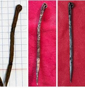 Очень рад всех вас снова видеть дорогие ФорумчанЕ ✌️ Пришло время открыть двери рабочего кабинета! Смахнув толстенный слой пыли со стола и книжных полок и наведя небольшой порядок вокруг себя, после долгого простоя, я не откладывая задуманную идею в долгий ящик, сразу засел за работу. Не так много времени прошло с того момента, когда мне, в своих бесконечных скитаниях по дремучим лесам и невообразимых размеров оврагам, посчастливилось найти, ТопоР☺️ красоты невиданной и сохранности благородной! Определили сей артефакт,как Русь 12-13 век Продать это чудо, мне совесть не позволила🤷♂️ да и на стене,в рабочем кабинете ещё много свободного места! На том и порешил. 7 дней и 7 ночей лежал топорик в воде дистиллированной,избавляясь от солей губительных! Остатки всеразъедающей ржавчины были изгнаны с поверхности с помощью электролиза и щётки металлической. Защитный слой (от окружающей среды губительной и последующего ржавения неприятного и разъедающего) был нанесён с помощью Танина. Прогулявшись по рынку виртуальному и повстречав купцов заморских,сторговал у них немного товаров для отделки топора русского. и закипела работа и возмущению Буратино не было предела 😂 но руки продолжали ,со знанием дела и чётким образом в голове,строгать задуманную форму древка,для топора диковинного С помощью бумаги наждачной и манипуляций не сложных,были убраны все неровности от обработки грубой,и стало древко гладким и правильным,и это было хорошо! Подышал дракон огнём на рукоять берёзовую,для вида эстетического, и наложено было заклинание на неё,НитроМорилкой в два слоя. В итоге получилось вот это: Думаю 🤔,для лучшего хвата, ещё нижнюю часть древка, обтянуть мягкой кожей?! в процессе доработки ,но начало положено. До новых встреч....17 баллов