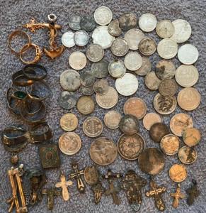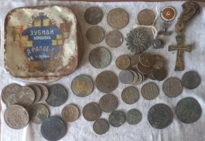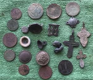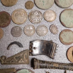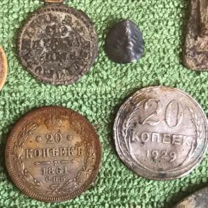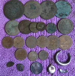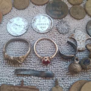 Добрый вечер,товарищи! Довелось побывать в двух домиках,но времени на отчёты совсем не было. Вот сейчас появилось свободное время и спешу показать что попадалось . К сожалению один домик подвергся капитальному ремонту в советское время . Поэтому в основном в нём были советские монетки и две залётные империи (видимо были в коллекции у детишек),а второй домик порадовал серебром как царским так и советским. Чердаки не добили,пробежались по быстрому по верхам,попалась крышка от зубной пасты и иконка советских времен (на фото нету). В +30 на чердаках как в сауне,кто в теме поймёт. Решили оставить их на более прохладную погоду,если кто добьёт - не жалко . С крупными монетами не повезло,все затёрты в обращении,а может над ними издевались . В общем как то так,всем удачи в любимом деле! 😉37 баллов