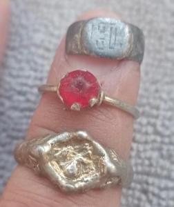 Доброго ЗдравиЯ Вам дорогие ФорумчанЕ ✌️ МиР ТруД МаЙ - МайскиЕ СкитаниЯ- Спешу поделиться с вами своим увлекательным выездом на КоП, Квэст-ВыездоМ " как любит говорить мой друже @Arvest Да как не назови! Словами порой не описать,те эмоции , которые испытываешь! Выезд планировался совместный,со знакомым камрадом на двое с половиной суток,(2 недели, потихоньку готовились) в соседнюю область с разведкой. Деревню выбрали, конца семнадцатого века основания, которая граничила с лесом,через который в соседнее село шла старая дорога! Резервной локацией наметили урочище в 15 км. от оной ,в котором ещё и господский двор был. Деревушка не такая уж и маленькая, зайцу её не перелететь,орлу не перебежать 😅 ну а нам пологалось максимально побывать во всех её самых интересных на наш взгляд местах! После выполнения своих рабочих обязанностей,в среду 30 апреля в 19:30 мы отправились в дорогу! На карте была поставлена точка в лесу,в небольшом отдалении от местных, деревенских жителей, дабы максимально сохранить "инкогнито" своего прибывания (отдыха) и не встречать незваных гостей! В конце одинадтого часа,отмахав чуть больше 200 вёрст мы были на месте! За пол часа, с китайскими фонариками на голове благоустроили лагерь из которого в последствии совершали набеги на отмеченные точки. С раннего утра пораньше мы разбежались в разные стороны, каждый в своих мыслях и в предвкушении портретного серебра 😂 Эквинокс 600 и ЛегендА вышли на охоту! Я решил пробежаться по старой дороге,которая перемежалась с ранней советской и пособирать потеряшки на ней. КамраД отправился гулять по лесу. Спустя пять минут,аж вздрогнул от внезапно включившейся рации в которую камрад ,без лишней скромности сообщил,что открыл счёт Николаевской копейкой 👀 1:0 увы не в мою пользу. Вот Гад, подумал я и пошёл дальше,вытирая слёзы рукавом😅 Сигналов было не особо много,да и дорога почти половину пути была в копках ,но тем не менее , спустя какое то время и у меня назвонился достойный ответ этому ХамУ 😁 5 масонских копеек 1837года ,сообщил я в рацию ,в ответ мне было только завистливое молчание 😅 вот и ладненько! Потеряшек было немного,тем не менее счёт рос с обеих сторон. Удалось ещё найти: -Целенькое колечко с цветочком -Не заставил себя долго ждать пятачок Александра второго 1868г. -Елизавета Петровна 1759г. попалась на обратном пути в лагерь . - а также пара советов и пуговиц - два рюкзака разнообразного металла Камрад ,фото выпавших из земли находок не делал 🤷♂️ немного не в теме! Спустя часа 3 мы встретились в лагере ( для продолжения уничтожения всех тех запасов алкаголя и мяса 🤭 которые были с собой взяты,1 мая всё таки!) для перекуса и обсуждения первых впечатлений об этом месте. На следующей день погода резко изменилась и не в лучшую сторону (пока была переменная облачность) после обеда стоял дождь и стоял до утра 3 числа! Решили оставить лагерь и съездить на урочище пока дождь не перекрыл туда доступ! Походить много не получилось (за пару часов ,по верхам , у меня выпала женская поясная пряжка и пуговица гирька, а у камрада пара ранних советов и пара империй) начавшийся было потихоньку дождь,набирал интенсивность,пришлось экстренно сниматься и уезжать обратно в лагерь из этого места ,но оно не хотело нас отпускать😂 и заставило немного задержаться! Благо хоть за трактором не пришлось 15 км. топать, а с