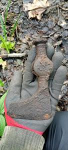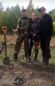 -финита ля камедия- .... Фестиваль завершился,розданы все подарки, опустели самовары и свернули полевую кухню 😢 Очень тёплый и солнечный сентябрь немного преутомил не только участников,но и организаторов этого фестиваля! Неспеша и в лёгкой усталости от прошедшего мероприятия, камрады собирали свои палатки и разъезжались. Вечерело 😁 Участники покидали локацию 11 слёта, и уезжая прощались звуками клаксонов своих автомобилей. Наши сборы тоже не заняли много времени и спустя 40 минут мы уже были готовы выехать на встречу новым приключениям 🎉 и погудев клаксоном ,на звук которого вскинулись руки и были слышны радостные крики провожающих нас камрадов, укатили в закат! Да. Наша экспедиция продолжалась и впереди нас ждал наш Форумчанин @fedor951987 к которому и начали мы держать свой путь. - ДорогА на одном дыхании - Лёгкие,но частые уплотнения на дорогах Солнечногорска ни чуть не подпортили нашего приподнятого настроения, подмосковья сменяли друг друга и вот уже МКАД остался позади, впереди нас ждали леса Пензенской области. 750 вёрст в хорошей компании пролетели как один миг и на зарождающемся рассвете, ранним ранним утром мы были на месте. -день первый,фунды 19 века - Наш Форумчанин @fedor951987тепло встретил нас. Фёдор разместил нас в своём трёх звёздном сельском отеле ☺️ Лично у меня,сон сняло как рукой,и отправив спать молодожёнов в один из номеров в гостинице,мы с Фёдором расположились в беседке,что рядом с домом ,и моё знакомство с этим человеком продолжилось. Сколько нас таких ☝️огоГо объединённых одним делом, одной идеей,одними мечтами! За разговорами подошло и время отправляться на коп в леса Пензенской области ☺️ Совсем немного отдохнувшие и разбуженные насильно 🤷♂️молодожёны были полны решимости и совсем не против: кому покопать,а кому и полюбоваться природой и красотами здешних мест. Раскачавшись ближе к 10 ,позавтракав и приведя себя в порядок,мы начали грузиться в машину. Фёдор за штурмана . Время пришло съезжать с асфальта и с лёгкой жестикуляции рук нашего гида,мы попадаем в нужную нам точку. Прекрасный осенний лес с хорошей проходимостью До самой локации не доехать и оставшийся путь Фёдор вёл нас через лес ,к нескольким фундаментам 19 века. По пути мне попался сомнительный сигнал , который отвечал черниной с цветным отливом. Решил копнуть ,и не зря! Почти на глубине штыка, легенда зацепила расколотый колокольчик. Довольно приятная находка,жаль не целый 🤷♂️ Сначала найдя ключ А затем подряд два топора Я и представить себе не мог,что откопаю довольно таки интересный набор для выживания в лесу 😁 скитание по лесу и его оврагам возвращали к жизни и придавали бодрости похлеще адреналина, введённого в самое сердце. Грибы мы не брали,оставляя их лесным жителям. Оставив Фёдора и Володю на фундаменте я решился прогуляться по оврагу и поискать в нём сигналы. Пройдя в относительной сложности метров 200 по оврагу и немного цепляясь за склоны , рюкзак за спиной подавал знаки , что с него уже хватит и пора поворачивать обратно. Полезные цветные сигналы увы не встретились и дойдя до точки сбора, попив чай с бутербродами , мы потопали обратно к машине. Вечерние застолье и байки у костра, песни под гитару,и шашлычок под коньячок 😁 Под коньячок, который был презентован нашему модератору Арвесту по случаю его свадьбы ☺️ Огромное спасибо @Амбиде
