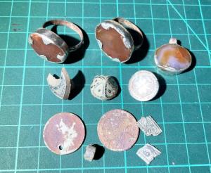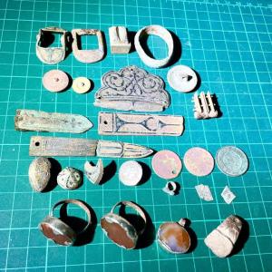 Да хлам в основном по находкам так то, пару помоек 1920 годов нашел на чердаке, со свинксом 3 все не могу подружиться, звенит громко, чрезвычайно чутко с железом, оцветняет, на особо замусоренных местах верещит громко слишком и почем зря, не понять сигналов, не удобно держать его и смотреть на индикатор во время работы на беззвучном режиме , со старым пином тоже не нашел цветного, хоть покопал вручную нашел склянок некоторых, ну и плюс романтика.26 баллов