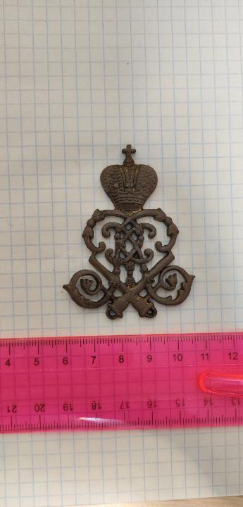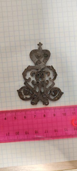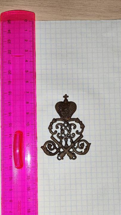 Есть вензель морских крепостей Петра Первого. Позолота еще видна, но состояние не нового(видно на фото). Найден приборным поиском. Интересует ?