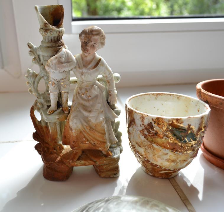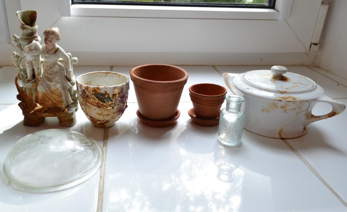 Всякого разного по мелочи. Зажигалка в серебряном корпусе была, кружка эмалированная, интересное исполнение, жаль рассыпалась.
