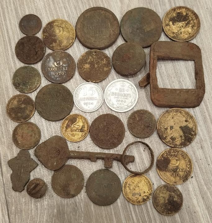 Очень-очень даже выход! Да и сохран у старых советов,вроде норм! А так и серебро присутствует,но мне больше всего пуга Московская нравится! Люблю всякие такие находки.Интересно,что было бы -если дождя не было? Ждём ещё отчёты, Удачи!!!