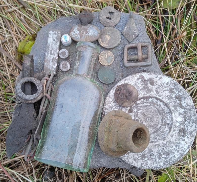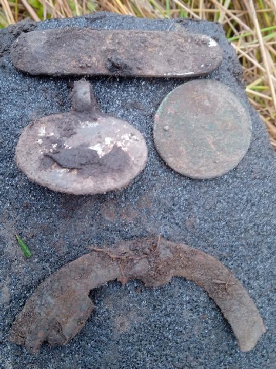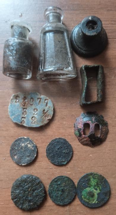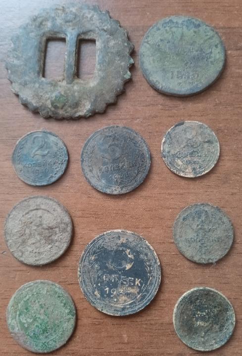 Поменяв направление шурфа вроде выпал какаль,потом еще и вроде пошло,по итогу под самый конец выпал жетон,у товарища солдатский складень и монет,какалей тоже около десятка.