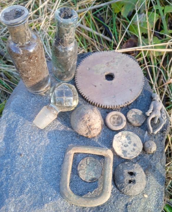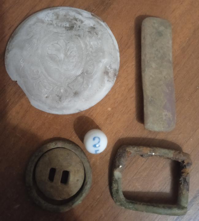Всем доброго времени,сегодня прокатились на шурф на 4 часика,у товарища 4 какалика,пломб несколько и пр хлам у меня что можете видеть,тоже хлам,пару какалей,крыжечка с рисунком от чего то и под конец мин.вода выпала.