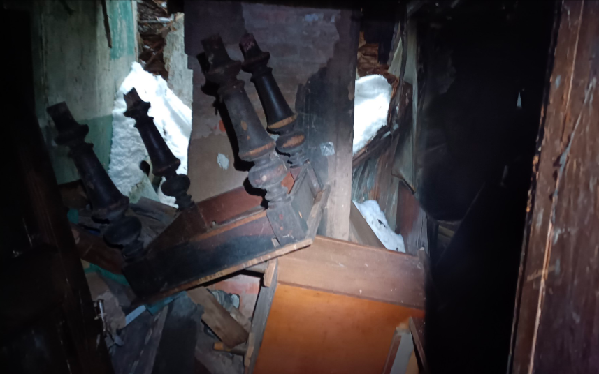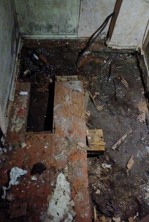 Незадолго до того момента,как я собирался покинуть этот домик я возился в прихожей с полами,и только по счастливой случайности 😱 избежал падения на свою голову, старенькой крыши ,которая под тяжестью мокрого снега не выдержала и обрушилась внутрь
