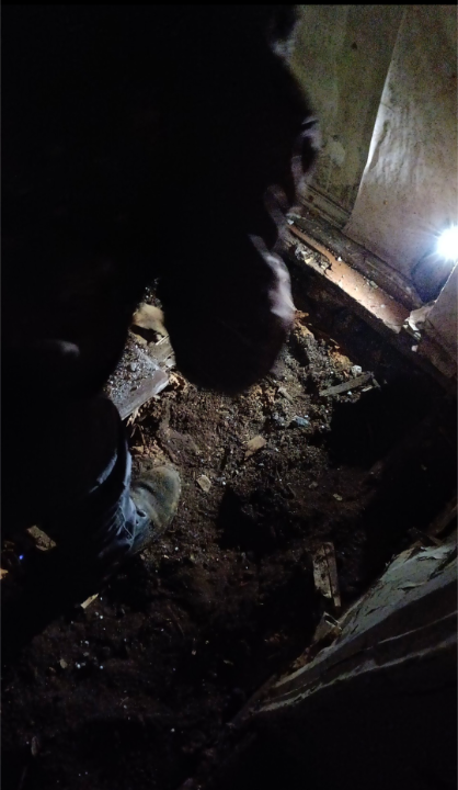 Засыпка начиналась в полуметре от доски пола и подпольно-мышиный поиск, осуществлять было вполне комфортно.