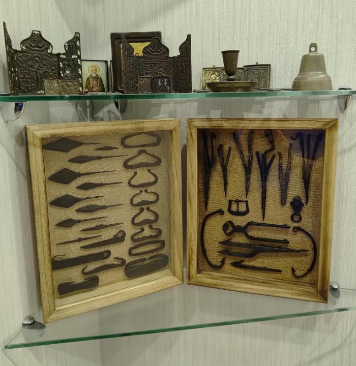 Готова вторая витрина со светцами, рыбацкими принадлежностями и т.д.