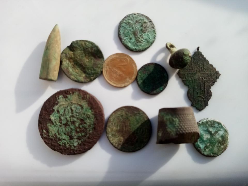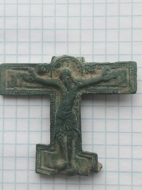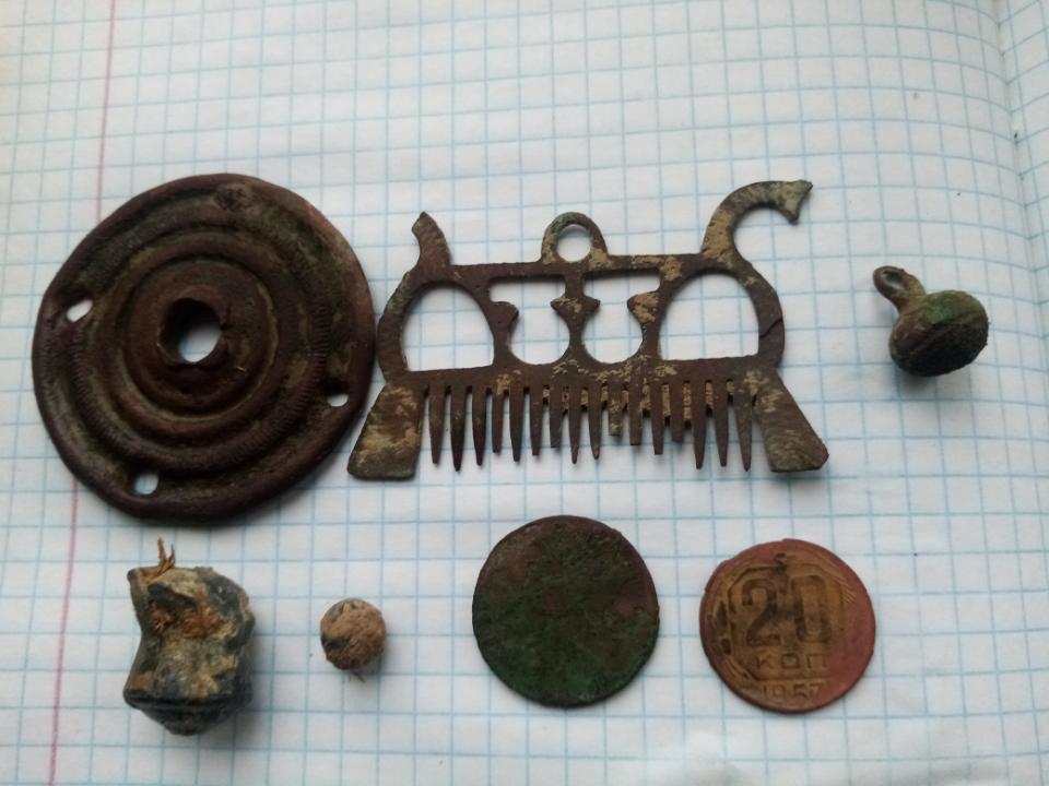 Добрый день. Сходил на пару часов сегодня. Опять месиво на поле, промучавшись пару часов плюнул и домой. Из находок крест обидно, что  сломан. В лесу полно еще травы да и листья мешают. Лес у меня смешанный ходить плохо.