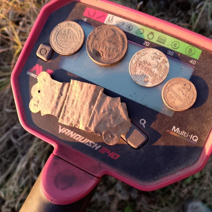 ....Опять поле, меня в лес не пускало. Хоть бегом беги, не включая МД.. Выбито , перевыбито , 13 лет его хожу, а находки нет , нет да выскакивают. Вот и сегодня , почти у опушки ловлю сигнал четкий , добро пожаловать на свет, пятикопеечная  монета 1930 года. Очень частая монета у нас, как 1946 год. Вот и начало есть . В метре ещё сигнал цветной из глубины, более штыка выкопал ямку и снова пять копеек))) только постарше на пару веков. Правда время его не пожалело, но всё приятная находка. Поблагодарив полюшко забрался в чащобу . Больше разведка сегодня была , чем поиск . На последним дыхании батарей , набрёл на дорожку старую и первый сигнал огласил звонкой трелью. Почему-то сразу подумал, серебро . Так оно и оказалось , 10 копеек 1923 года, вроде и рядовая монетка , но всё равно приятно. Вот и ещё один день прошел в компании Деда Хабара и Лешего , всем добра и мира.