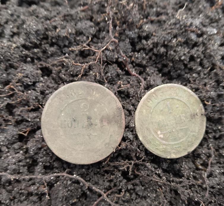 Место битое , перебитое, но находки есть всегда. Покружился не много, вдоль старой дороги и покопав первые пробки и проволку. Ловлю четкий сигнал, лопата(подарок Макса кстати) выкидывает ком земли из которого посыпались монетки , ураааааа в моей душе и я беру в руки монетки , радостно, хоть и поздний совет , но всё равно приятно первый нормальный сигнал и сразу расыпуха) IMG_20260412_141724_891.thumb.jpg.b2b44cce6722701c164e0bf1344d0540.jpg