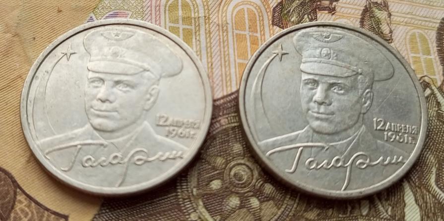 Лот из 2 монет 2001 года Гагарин СПМД и МИД состояние на фото