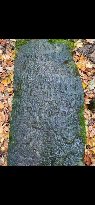 Нашли плиту в лесу на ней что то написано может кто прочитает- переведет на современный язык ?) и тоже интересно какой это период примерно каких веков.