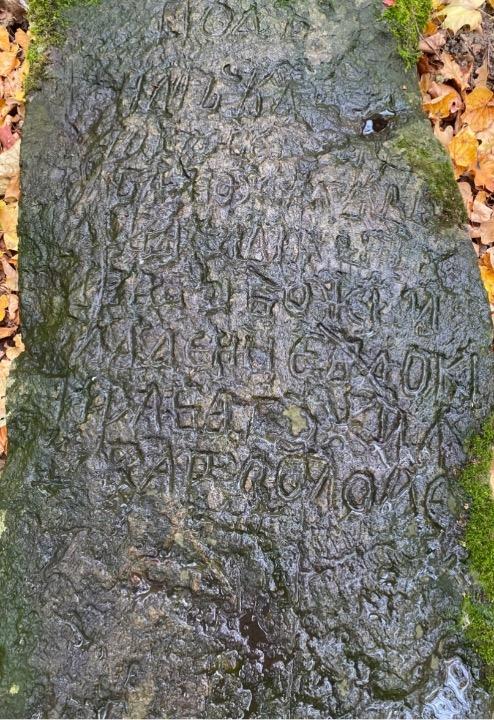 Согласен, что надо каким-то образом выделить надпись. Может как советуют, попробовать водой. Кто знает, может не надгробье, а что-то поинтереснее. В понедельник гуляли по Коломенскому. Там камень, который привезли из Полоцка.  Вроде простой, всего с одним крестом и парой надписей, а ему тысяча лет. Называется Борисов камень.И не надгробье как могло бы сначала показаться.