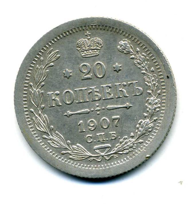 Описание лота: 20 копеек 1907 СПБ-ЭБ