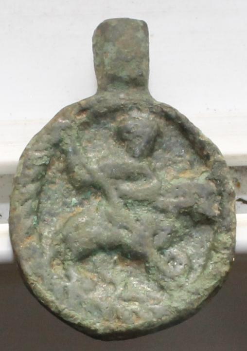 Всех приветствую. Вот такая привеска 15-16в, помыта только водой. Размеры - 24мм на 17мм,  материал думается олловянестая бронза. Прошу оценить. Заранее благодарен.:beer: