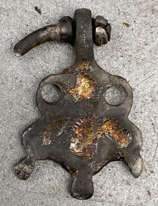 Приветствую! На прошлом коре поднял зеленую штуку, сначала не придал значения, а сегодня сунул в аммиак ровно на две минуты, проявился белый металл и остатки позолоты, предполагаю серебро, чертит по бумаге. Камрады, есть мысли на что похоже?