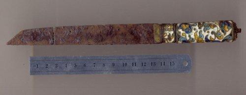 Чем то похоже на рукоятку с ножа 17-18вв А вот по размерам подходин или нет, незнаю.
