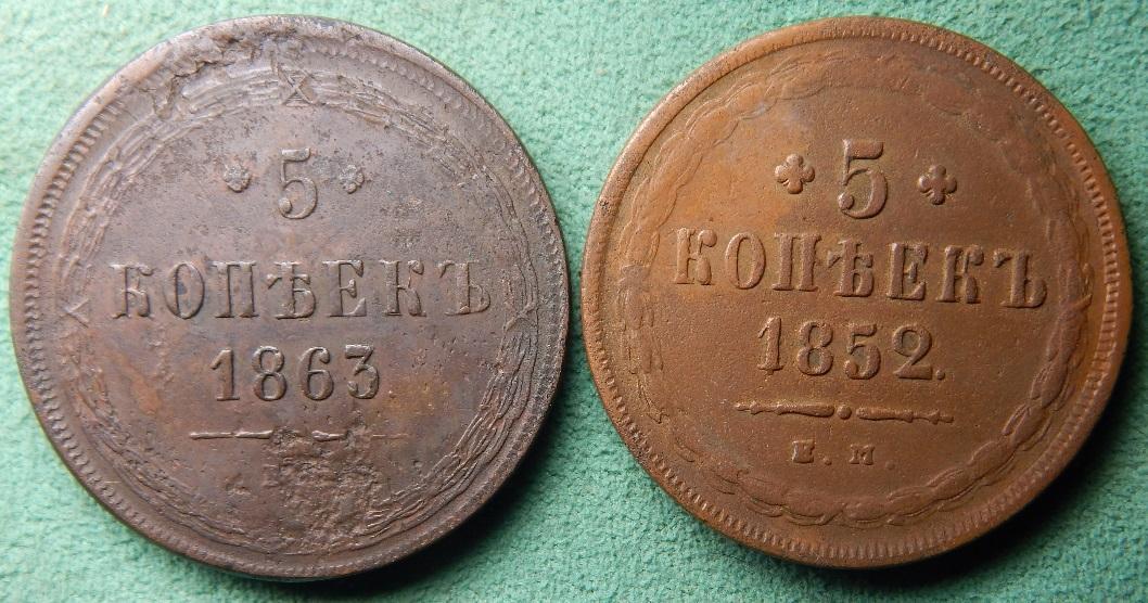 5 копеек 1852 ЕМ, 1863 ЕМ. до 18.10.2025 в 22-00 МСК.