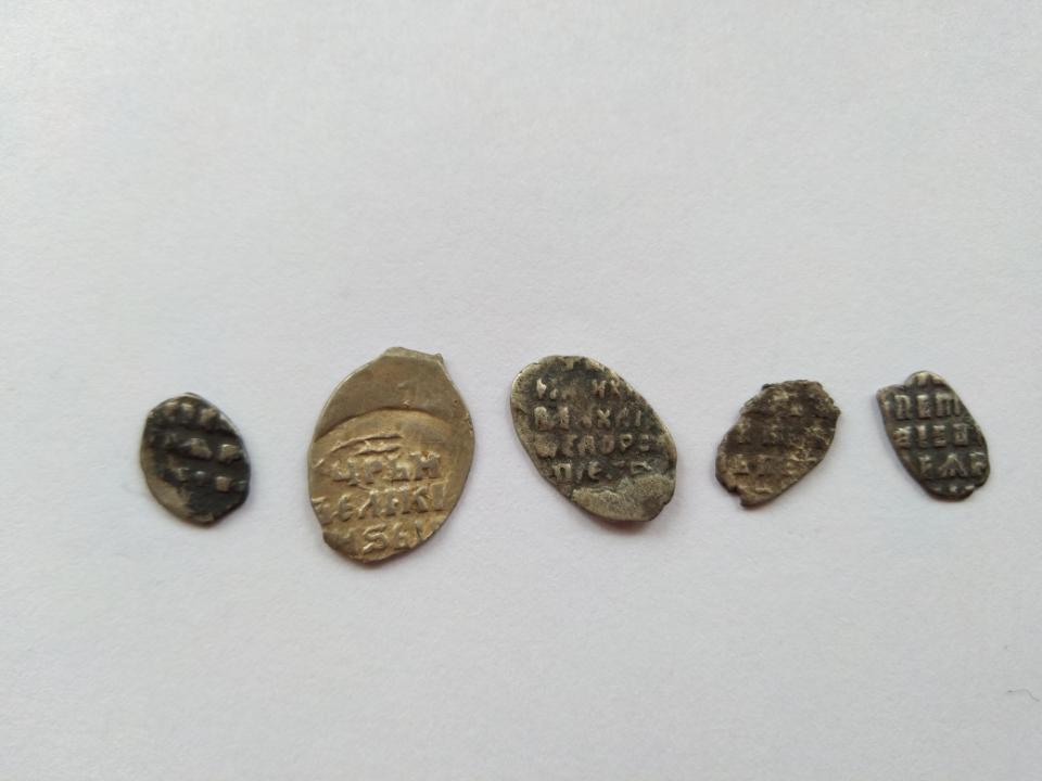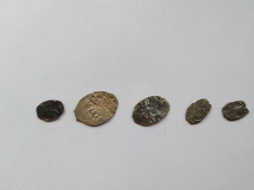 Доброго.Первая и две последних-Пётр Алексеевич,вторая-новгородская копейка Грозного (её определил,поскольку сомневался) и третья Михаил Фёдорович.
