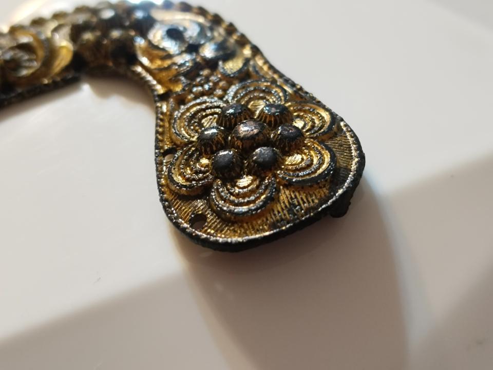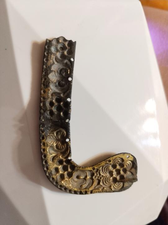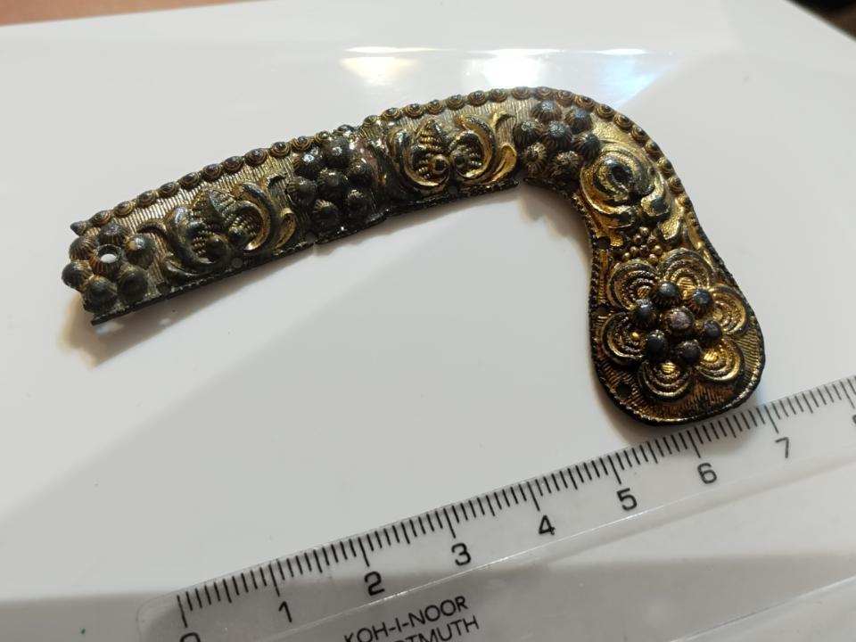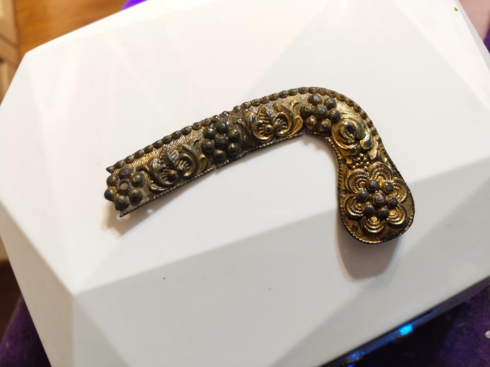 Как я понимаю, это часть украшения на голову. Внутри медь. Сверху позолота (?)