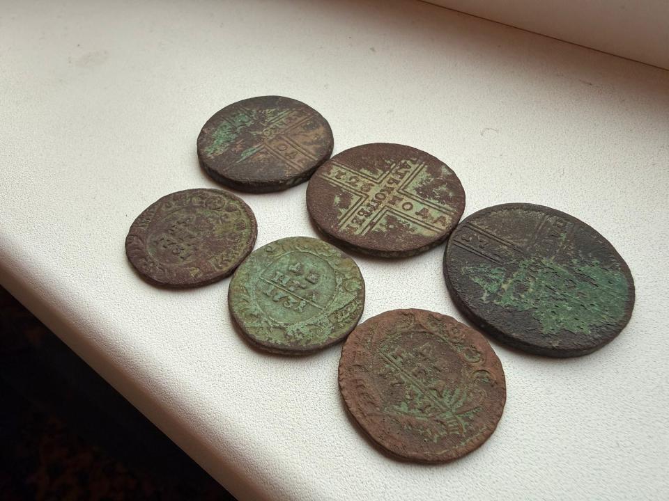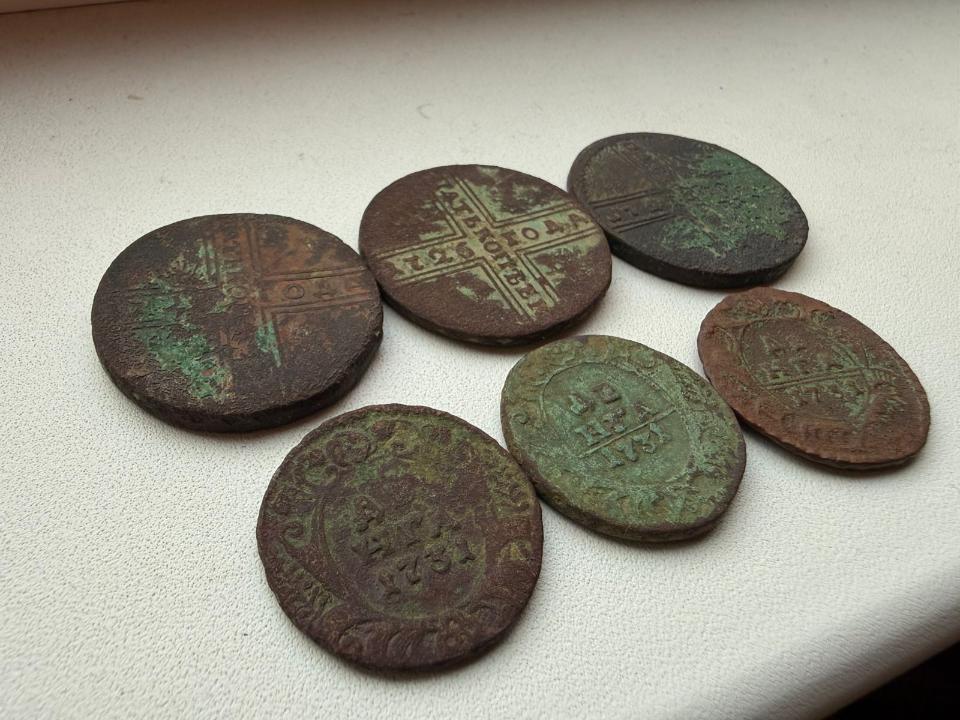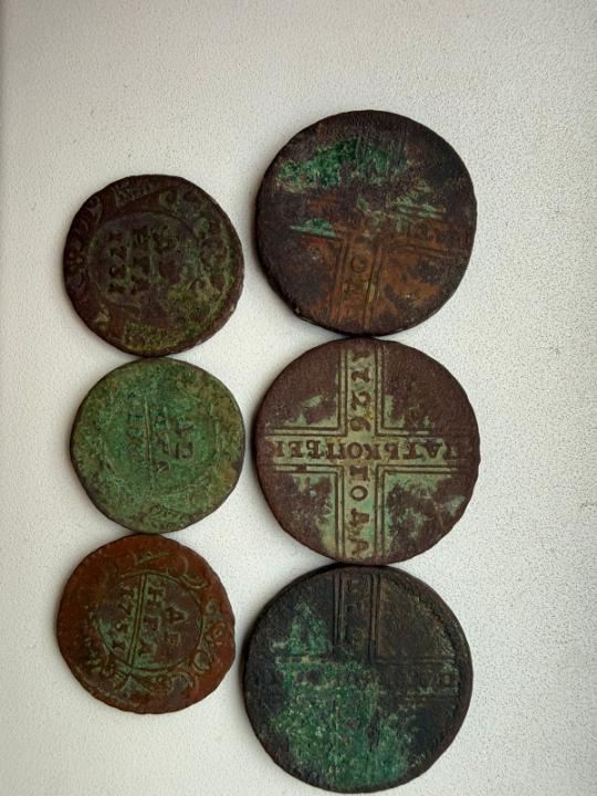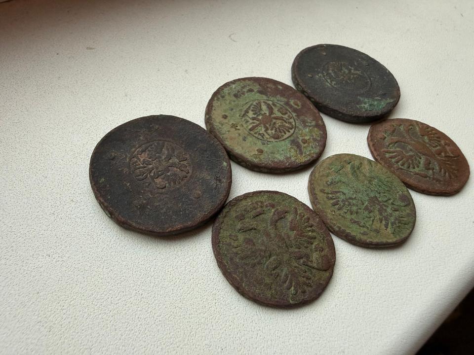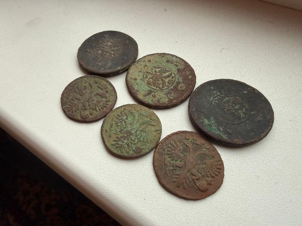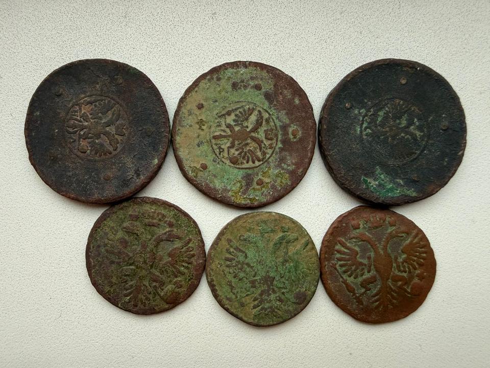 Добрый вечер, уважаемые форумчане! Попалось в лесу небольшое селение. Монеты - полушки, денги и крестовики. Денги 1731 попалась и без черты и с одной и с двумя. В чистке опыта нет пока. Просьба оценить эти монеты, если выставить одним лотом.