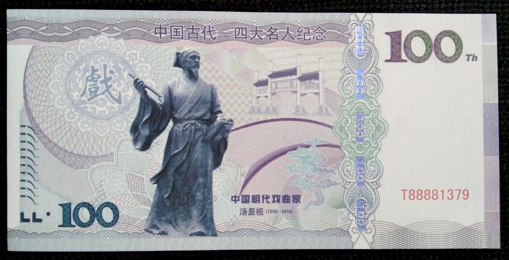 Описание лота: Китай. "Известный поэт и драматург Тан Сяньцзу." PRESS / UNC тестовая флуоресцентная