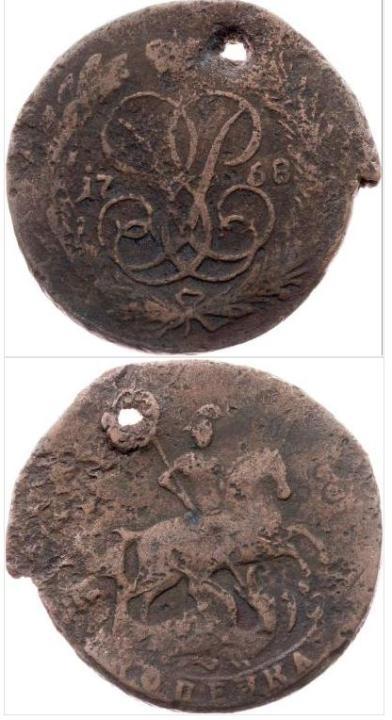 Подскажите пожалуйста, что за монета? И главный вопрос, почему на монете 1768 года вензель Елизаветы Петровны?
