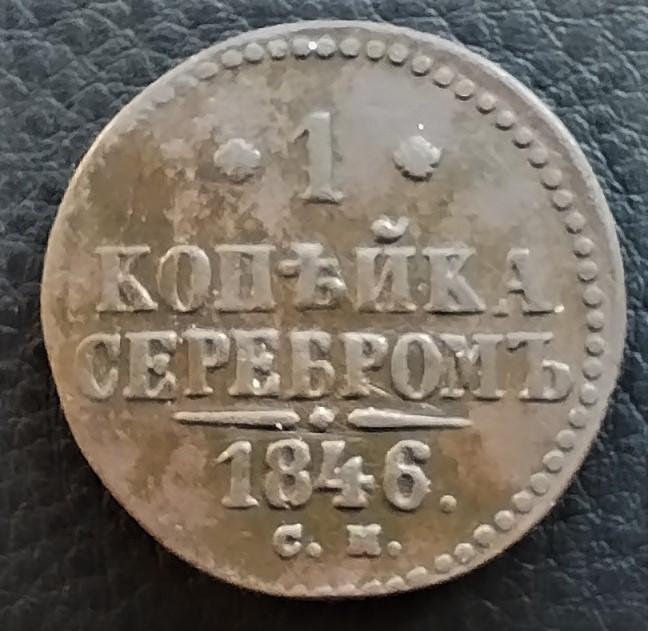 Предлагаю монету 1 копейка серебром 1846г.см.