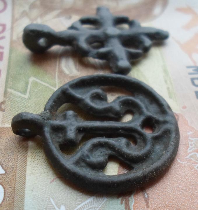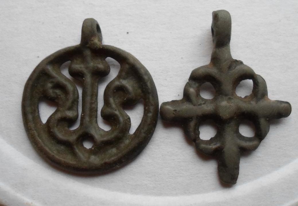 видится домонгол 12-13 век. Монетовидная привеска с так называемым процветшим крестом.