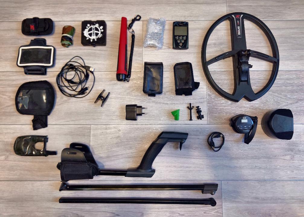 Всё, что на фото: Штанга оригинал, Блок, Катушка х35 с усилителем ушей, Наушники, Пинпойнтер Mi-6, ЗУ, несколько чехлов, запасной болт катушки.