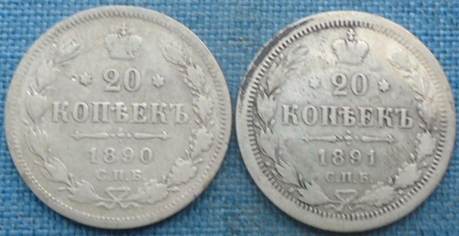 Описание лота. 20к 1890г,1891г.