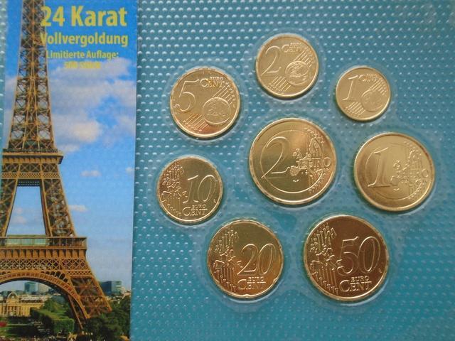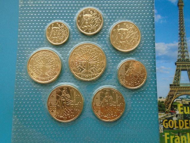 Набор из 8 позолоченных монет Евро Франция 2000 г До 15.11.2025 до 22-00 мск