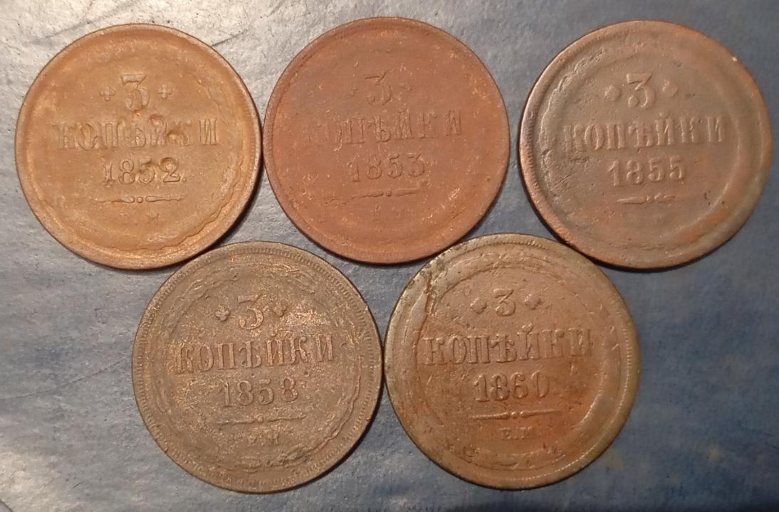 Описание: 3 копейки медь ем 1852,1853,1855,1858,1860.