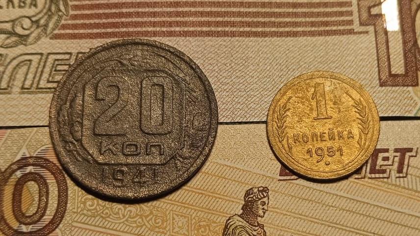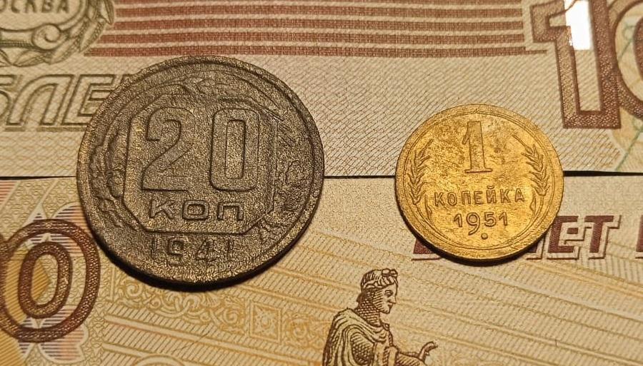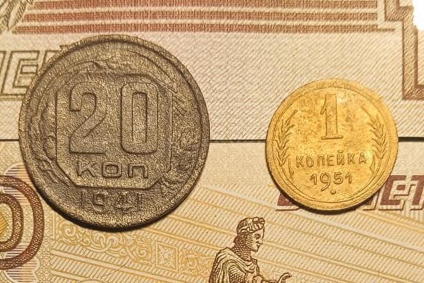 Вашему вниманию 20 копеек 1941 года и 1 копейка 1951 года