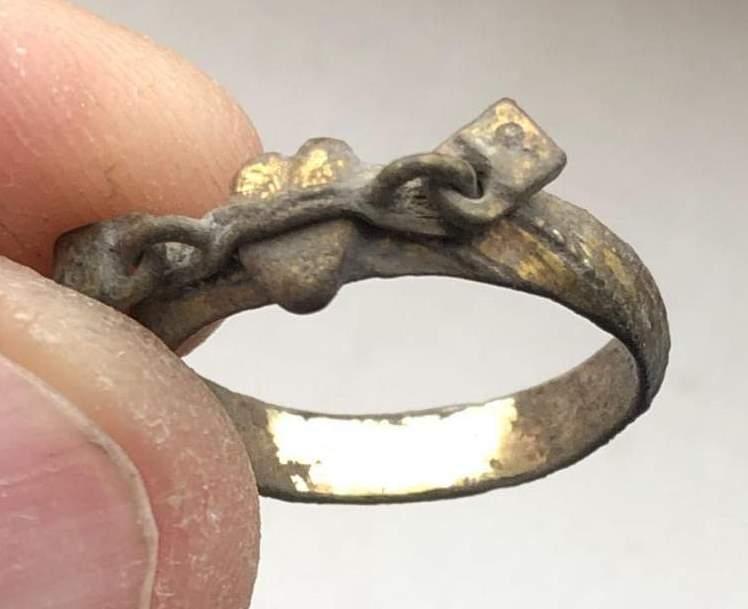 Доброго времени суток, уважаемые камрады! Помогите пжл с колечком: что за цепочка сбоку напаяна (первый раз встречаю такое), временной этап и клеймо (если такое возможно). Понял что 84 проба только. Спасибо!