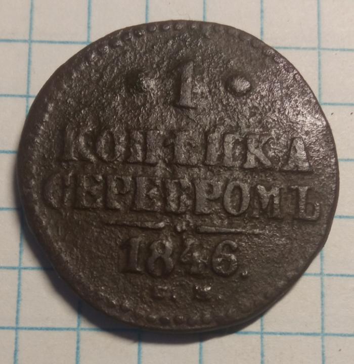 Описание лота: 1 копейка  серебром 1846 см