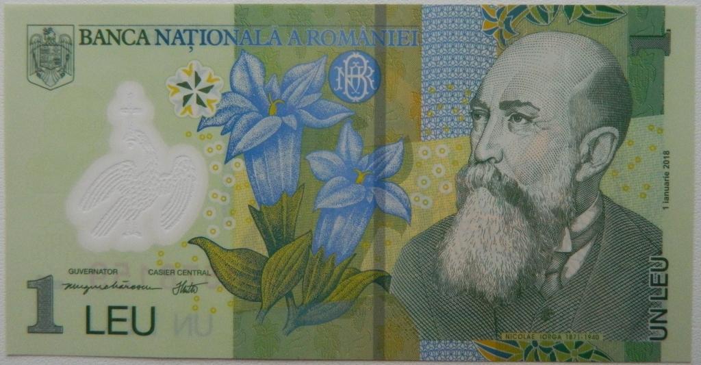 Банкнота Румыния 1 лей 2018 года. Полимер.  Банкнота без обращения.