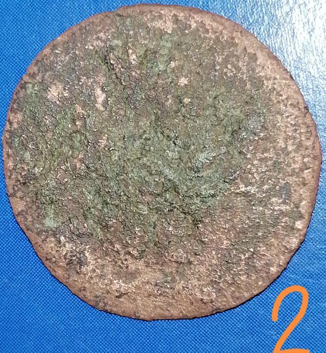 Здравствуйте, уважаемые Знатоки! Прошу помощи в атрибуции найденной близ Ростова-на-Дону, в ст. Старочеркасской, медной монеты. Вес 1,96 гр, диаметр 21 мм, толщина 1 мм. Состояние скверное. На фото номер 2 под определённым углом вроде прослеживается имперский орел, характерный для полушки и деньги Анны Иоановны и проч.