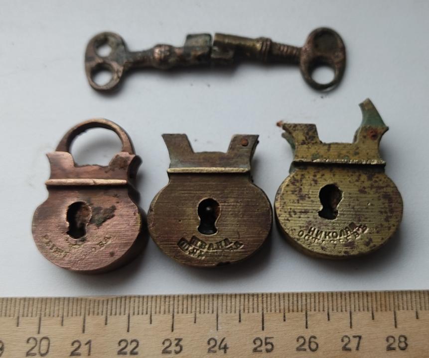 Описание лота: Бронзовые замочки с ключами на реставрацию разных производителей 19 век.