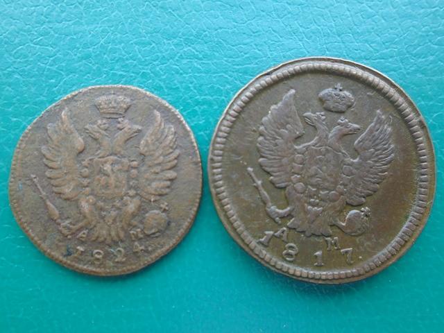 Описание лота: 1 копейка 1824 КМ АМ и 2 копейки 1817 КМ АМ