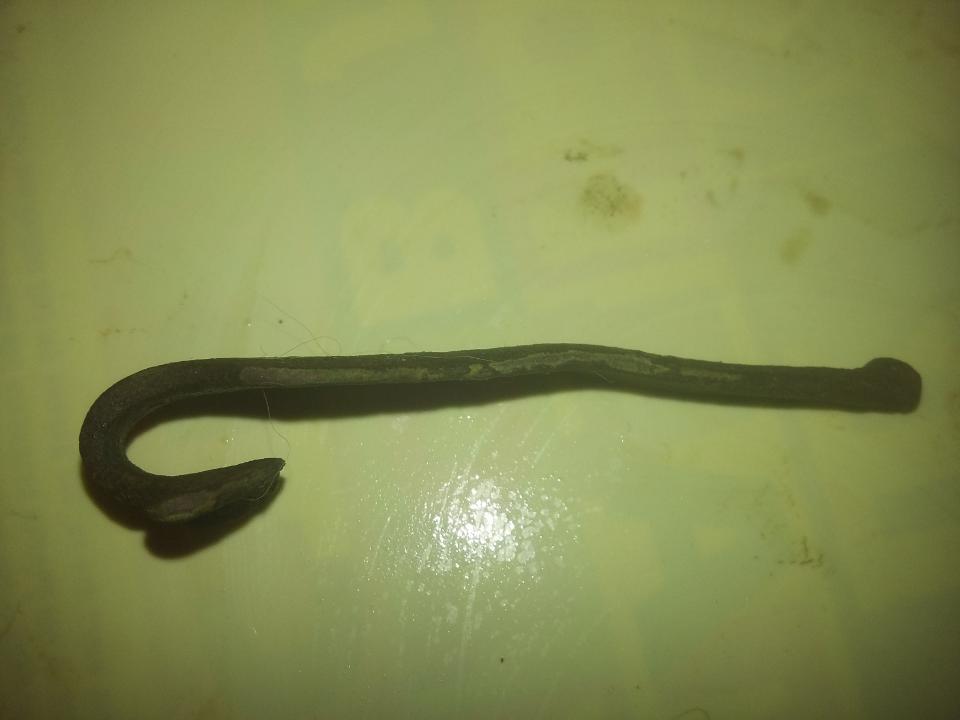 Нифига вообще не понятно по добавленной фотке  с чертежом. Скопировал на комп, увеличил, все раплылось. Пробовал рассмотреть с помощью лупы это, тоже не получается ничего увидеть. Не можете дать фото покрупнее или ссылку на информацию о предмете? Как он вообще называется? Версия с зацепом под холодное оружие маловероятна, разве что под детский ножик или сабельку, нормальная сабля или нож точно сломают такое хлипкое изделие. Не катит.