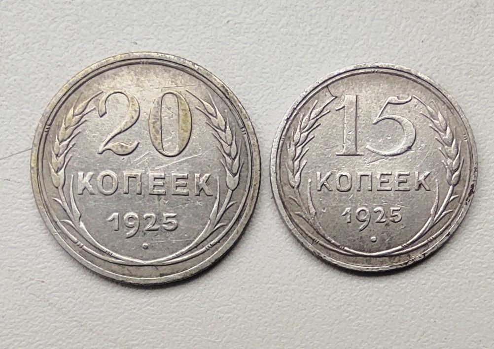 Лот из 15 и 20 копеек 1925 год. до 2.01.2026г. в 20.00 по мкс