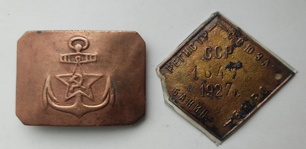 Описание лота: Морская  пряга с утратами и Регистрационный знак плав средства бакинское бюро 1927 год.
